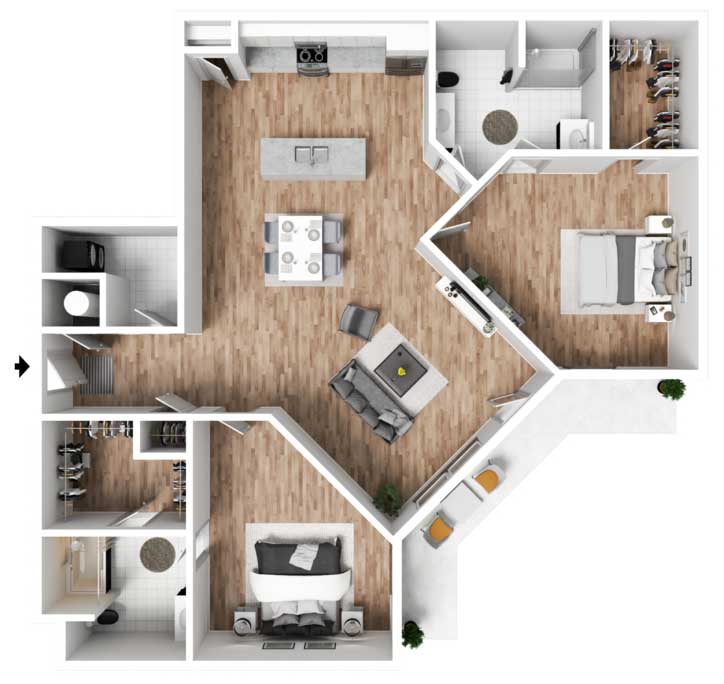 The Jax presents a selection of floor plans designed to reflect comfort and versatility. Our homes are outfitted with high ceilings, oversized bedrooms, and expansive walk-in closets that elevate daily living. Premium finishes like hardwood flooring and double-pane windows pair beautifully with practical features, including in-unit washers and dryers, trash compactors, and cable-ready access. Each of our apartments in Monroe comes with a private balcony or patio, bringing a touch of nature right to your doorstep. With beauty and utility in every layout, our homes at The Jax bring refined interiors that meet modern expectations.